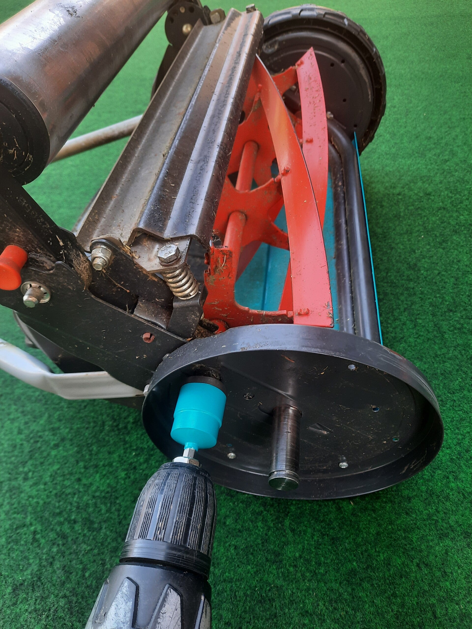 Der Backlapping-Adapter wird verwendet, um die Schneidspindel des Spindelmähers rückwärts zu drehen, damit die Messer gegen das Untermesser geschliffen werden. Der Adapter wird in einen Akkuschrauber eingespannt und ermöglicht das mühelose antreiben des Spindelantriebs.
