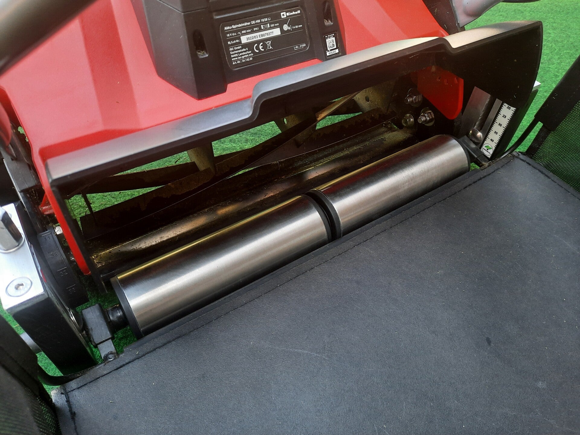 Stufenlose Höhenverstellung Einhell Akku Spindelmäher GE-HM 18/38 Li